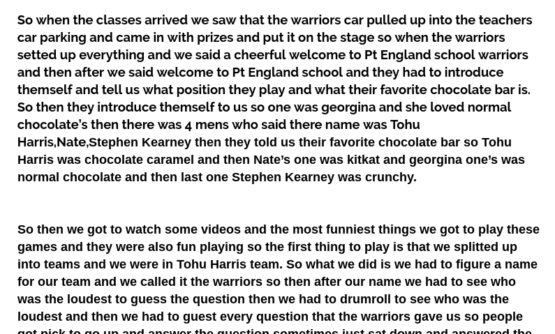 SO WE HAD A VISIT FROM THE WARRIORS LAST TERM AND FORGOT TO POST THIS ON MY BLOG BUT HERE IS MY WRITING WHEN THE WARRIORS VISITED OUR SCHOOL